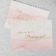 Cette carte de proposition de femme de chambre Pink Watercolor Gold Type présente un design élégant mais minimaliste et polyvalent. Les nuances de corail, de pêche, de rougissement, de mauve et de rose poussiéreux dans l'aquarelle rose peinte évoquent un lever ou un coucher de soleil, agrémenté d'une parties scintillant d'or minimale avec le type de calligraphie dorée, créant un design délicat et classe, mais unique et simple. Écrivez votre note personnalisée au verso pour montrer à vos amis combien vous êtes excité de les avoir dans le cadre de votre journée spéciale.