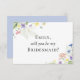 Customisez facilement cette carte de proposition de parti nuptiale pour correspondre à n'importe quelle position - de la demoiselle d'honneur à la servante d'honneur, au prétendant, au meilleur homme et au-delà. Un arc-en-ciel de fleurs sauvages simples dans un élégant style aquarelle allie un design mariage intemporel et polyvalent. Le feuillage minimaliste Airy rencontre toutes les couleurs de la prairie dans une collection élégante. ・ Customisez-le ! Suivez le modèle pour ajouter vos propres détails de texte personnalisés. Vous pouvez modifier la police, la couleur et le placement selon vos besoins. ・ Coordonnez-le ! Parcourez la collection Mariage Fleur sauvage Watercolor pour tous les produits correspondants, y compris les enveloppes, les étiquettes de courrier, la décoration de fête et plus encore!