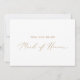 Cette délicate carte de proposition de femme de chambre d'honneur en or est parfaite pour un mariage moderne. Le design minimaliste romantique présente une belle et élégante typographie de champagne jaune doré sur un arrière - plan blanc au look épuré et simple. Customisez la carte avec le nom de la mariée et la bonne d'honneur. Personnalisez le dos de la carte avec un message personnalisé.