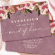 Célébrez votre histoire d'amour avec la beauté intemporelle de la collection mariage "Ophelia Floral" dans la couleur rose poussiéreuse, conçue pour évoquer romance et élégance. Cette suite mariage est ornée de fleurs d'aquarelle peintes à la main et d'un feuillage délicat, qui capturent la grâce et le charme d'un mariage d'inspiration jardin. Parfait pour ceux qui recherchent une touche raffinée mais naturelle pour leur journée spéciale. La palette de couleurs douce et sophistiquée comprend Smoky Pink, un rose mauve sourd et muet qui ajoute un ton doux et romantique ; Ophelia Rose, une délicate teinte blush qui rappelle les pétales frais ; Antique Pearl, un blanc cassé doux et crémeux qui donne une touche d'élégance vintage ; Forest Fern, un vert terreux subtil qui apporte une sensation naturelle et organique ; Dusty Orchid, une prune profonde et muette qui apporte profondeur et richesse au design général. Ces couleurs se conjuguent pour créer un look harmonieux et enchanteur, mêlant élégance florale, verdure subtile et tons luxueux et neutres. Chaque teinte ajoute profondeur et caractère, ce qui fait de votre suite mariage se démarquer par son charme intemporel. Découvrez la collection complète "Ophelia Floral", qui comprend des invitations de coordination, des remises de dates, des programmes de mariage, des décors, des faveurs et bien plus encore. Cette suite complète vous offre tout ce dont vous avez besoin pour porter le thème sur l'ensemble de votre mariage, assurant une expérience cohésive et élégante du début à la fin. Explorez la gamme complète pour créer l'atmosphère parfaite pour votre journée inoubliable. Visitez le guide de planification complet pour plus d'inspiration, des imprimés et des tonnes d'informations pour vous aider à planifier le mariage parfait - www.lulubelllane.com
