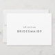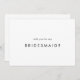 Cette carte de proposition de femme de chambre chic en typographie est parfaite pour un mariage moderne. Le design simple est composé d'une typographie minimaliste classique en noir et blanc, dans un style boho rustique. Personnalisable dans n'importe quelle couleur. Gardez le design minimal et élégant, en l'état, ou personnalisez-le en ajoutant vos propres graphiques et artwork. Customisez la carte avec le nom de la mariée et de la demoiselle d'honneur. Personnalisez le dos de la carte avec un message personnalisé.