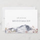 Cette carte simple florale de montagne bridesmaid est parfaite pour un mariage extérieur. Le design minimaliste moderne comprend une montagne bleu marine d'aquarelle avec des fleurs sauvages de chute rose pâle. Customisez la carte avec le nom de la mariée et de la demoiselle d'honneur. Personnalisez le dos de la carte avec un message personnalisé.