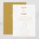 Carte de rappel de date classique avec un design élégant de colombe blanche et dorée. Une carte magnifiquement pliée pour annoncer la date de votre mariage dans un style intemporel et raffiné. Imprimé à plat — sans gaufrage ni texture en relief. Entièrement personnalisable avec vos informations d'événement.