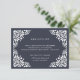 Conçue pour coordonner avec notre collection de mariages Beaux-Arts, cette élégante carte de réception est dotée d'une bordure blanche en papel picado encadrant les détails de votre réception de mariage, la date et l'adresse de votre mariage. Un riche arrière - plan bleu nuit ajoute une élégance spectaculaire.