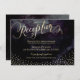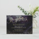 Conception de calligraphie à lettres dorées et confettis à points dorés sur fond aquarelle noir nuit ciel sombre, effet pailleté métallisé or faux, moderne, chic, propre et élégant, parfait pour un mariage vintage ou un mariage d'hiver en soirée. Personnalisez votre propre carte de réception pour votre ensemble d'invitations de mariage.