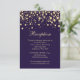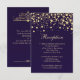 Carte plate de réception de mariage avec confettis à effet doré sur fond violet