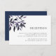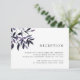 Carte d'encart de réception élégante et rustique pour les mariages d'automne ou d'hiver, avec une gerbe de feuillage d'automne à l'aquarelle dans des tons automnaux riches de prune pourpre et de bleu marine de minuit. Personnalisez avec les informations de réception de votre mariage, y compris l'horaire, le lieu et toute information supplémentaire comme le stationnement ou le transport. Conçu pour correspondre à notre collection d'invitations Harvest Plum.