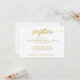 Cette belle carte de réception simple présente un script de calligraphie de luxe en feuille de faux or.