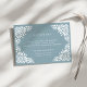 Conçue pour coordonner avec notre collection de mariage Beaux Arts, cette élégante carte de réception présente une bordure blanche de style papel picado encadrant les détails de votre réception de mariage, l'heure et l'adresse sur un fond bleu tourmaline poussiéreux.