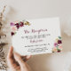 Cette carte de réception à fleurs bordeaux vert est parfaite pour un mariage rustique. Le design se compose d'élégants bouquets de fleurs dessinés à la main, verts, rousses, violets, rouges et bordeaux, inspirant la beauté naturelle.