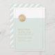 Or et menthe design moderne simple et minimaliste, la couleur de la feuille d'or faux ajoute un peu de glamour moderne, chic et simple, parfait pour un mariage moderne ou un mariage à la plage en été. Pour changer la couleur de fond de menthe afin de l'adapter à votre thème de mariage, cliquez sur le bouton "Personnalisez-le !", puis modifiez la couleur dans la section "Couleur de fond imprimée". Personnalisez votre propre carte de réception pour votre faire-part de mariage.