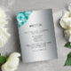 Une carte de réception en argent très élégante et en aqua mariage, il contient tous les détails importants que vos invités mariages devront connaître. Le design lui-même présente un thème très luxueux d'argent et d'aqua, avec un beau bouquet d'aqua et de roses blanches dans le coin supérieur gauche. Tous les détails peuvent être customisés très facilement pour répondre à vos propres informations. Le verso de la carte contient plus de roses aqua, et l'option d'inclure également les détails de votre site mariage si nécessaire (si ce n'est pas le cas, laissez cette ligne vide dans les options de personnalisation).