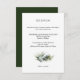 Invitation vos invités à célébrer avec cette carte de réception d'inspiration tropicale, avec des feuilles botaniques verts vibrants et des détails tropicaux élégants. Idéale pour une destination ou un mariage à la plage, cette carte de réception apporte une touche d'inspiration nature et animée à votre suite mariage. Customisez avec tous les détails de votre réception pour vous permettre de rejoindre facilement en toute élégance.