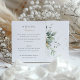 Invitation vos proches pour poursuivre la célébration avec notre carte de réception mariage élégante, avec un design d'aquarelle serein. La carte présente un délicieux éventail de verdure dans les tons sauge, olive et eucalyptus, avec de savoureux bouquets d'or qui attirent la lumière et apportent une touche festive. Le bon équilibre entre éléments d'inspiration nature et glamour rend cette carte parfaite pour une réception remplie de joie, de danse et de merveille. Conçu pour des soirées sophistiquées, ce design ravira les clients et donnera le ton pour une soirée inoubliable.