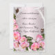 De jolies roses roses avec des perles sur fond rose. Cette belle carte de réception est prête à être personnalisée pour votre jour de mariage spécial. Personnalisez la carte en modifiant le texte dans les champs prévus à l'avant et à l'arrière. Vous pouvez changer le style, la taille et la couleur de la police, ainsi que le type et le style de papier.