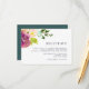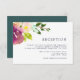La carte de réception fleurie moderne est assortie à notre mariage en Fleur Vibrant et aux invitations à l'évènement, et dispose d'un bouquet de roses et de pivoines aquarelles dans les tons vifs de rose, crème et violet, avec des feuilles botaniques verts. Personnalisez avec vos détails de réception de mariage, y compris le moment, le lieu et tout autre détail comme le stationnement ou le transport.
