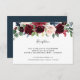 Conçu pour s'harmoniser avec notre collection de mariages en fleurs radiantes, cet élégant boîtier de réception botanique comprend un spray de marsala bordeaux, des fleurs rose rousse et bleu marine avec un feuillage d'eucalyptus vert, surplombant vos détails de réception de mariage, lieu et timing.