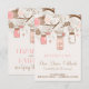 Carte de réception personnalisable avec une illustration fantaisiste rose et marron de pots Mason, fleurs, tourtereaux et cages à oiseaux. C'est parfait pour les événements sur le thème shabby chic et vintage.
