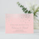 Élégante et moderne carte de réception avec des points de confettis argentés sur fond rose blush. C'est un faux foil argenté - il n'y aura AUCUNE feuille réelle. Cela fait partie d'une suite de mariage. Les articles assortis sont disponibles.