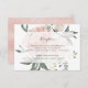 Conçue pour aller de pair avec notre collection de mariage floral aquarelle de la mi-été, cette élégante carte de réception botanique présente une gerbe de fleurs de pivoine et de rose peintes à l'aquarelle en rose saumon, pêche et crème, avec les détails de votre réception de mariage superposés sur un rectangle transparent. Une carte d'insertion d'invitation chic et élégante pour les mariages de printemps ou d'été.