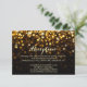 Cette carte de réception de mariage étincelante est sûre d'émerveiller vos invités. Caractéristiques de boules de lumière dorée scintillante qui s'estompent sur un fond noir subtil. Parfait pour un mariage élégant et classe.