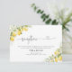Carte de réception Mariage Citrus Vert Citron. Cette élégante et élégante carte de réception de mariage présente une magnifique aquarelle peinte à la main et de couleur citron vert agrumes florale. Trouvez les articles correspondants dans la collection de fleurs d'agrumes vert citron.