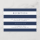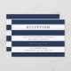 Les cartes élégantes et simples du boîtier de la réception sont ornées de lettres modernes sur un arrière - plan rayé bleu marine et blanc.