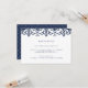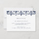 Conçue pour aller avec nos invitations de mariage et d'événement Marrakesh, cette élégante carte de réception dans un classique bleu nuit et blanc présente une bordure supérieure géométrique inspirée du Maroc. Ajoutez vos coordonnées de réception comme l'heure, le lieu et l'adresse, ainsi que toute information sur le stationnement ou les transports dans la même couleur nuit.