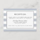 Conçue pour se coordonner avec nos invitations de mariage et d'événement Metro Stripe Gray, cette carte d'information de réception simple et chic présente un fond de larges bandes horizontales en gris bleu pâle et blanc, avec les détails de votre réception de mariage dans un mélange de styles de typographie bloc moderne et script traditionnel en noir classique. Ajoutez vos informations clés telles que l'heure de la réception, le lieu et le transport ou le stationnement en utilisant les champs fournis.
