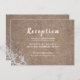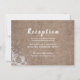 Cartes de réception de mariage élégantes en dentelle blanche vintage et paillettes argentées sur toile de jute rustique. Idéal pour un mariage rustique, un mariage dans une grange, un mariage champêtre et un mariage vintage.