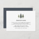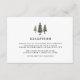 La carte de réception verte chasseur et blanche correspond à nos invitations de mariage et à nos cartes d'événement rustiques chic Tall Pines, et présente des silhouettes de pins dans des nuances sombres de vert. Personnalisez avec les détails de votre réception de mariage, y compris l'heure, le lieu et toute information supplémentaire.