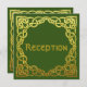 Élégant Mariage celtique Faux or Motif de nœud celtique sur fond vert . Il s'agit d'un modèle prêt à être personnalisé avec vos informations de mariage . Si vous souhaitez modifier la couleur de fond ou la police, cliquez sur « Personnaliser davantage » à la fin du modèle .