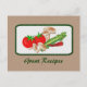 Des graphismes magnifiques de légumes mettent en évidence cette carte de recettes de taille de carte postale. Faites une excellente idée cadeau lorsque ajouté à notre classeur de recette ou tablier correspondant. Lignes sur le dos prêtes pour vous à écrire vos recettes favorites sur eux.