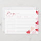 Carte de recette pour insertion dans l'invitation d'Enterrement de vie de jeune fille avec un thème de la Saint-Valentin. Ce design est parfait pour un Enterrement de vie de jeune fille sur le thème "l'Amour est dans l'Air".