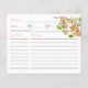 Carte de recette rustique pour votre douche à thème pêche avec aquarelle illustration du fruit de jardin sur une branche d'arbre. Demandez à vos invités de remplir cette carte de recettes et de les amener à la nuptiale ou au wedding shower. Parfait pour une douche d'été.