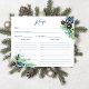 Neige en amour hivernale nuptiale modèle carte de recette, aquarelle bleu poussiéreux baies d'hiver sur branches de pin enneigé snowflakes carte de recette