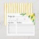La carte à recette de Fête des mariées Lemon Tree présente un design rustique et délicieux, et présente une aquarelle représentant une branche de citronnier ornée de succulents agrumes. Encouragez vos participants à compléter cette carte fantaisie avec leurs recettes préférées et demandez-leur de l'apporter à la mariée ou au wedding shower. Découvrez l'essence de votre célébration à thème citron avec ce souvenir charmant et pratique, assurant un événement mémorable et savoureux partagé avec une famille et des amis chéris.