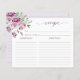 Carte Recette Fête des mariées violette. Élégant script de calligraphie et d'exquises aquarelles peintes à la main dans la lavande douce, rose vif, bordeaux et violet vif, ornées de fleurs sauvages délicats, de roses et d'une végétation élégante. Parfait pour les douches nuptiales du printemps, de l'été et de l'automne, chaque article de cette collection murmure l'amour, l'enchantement et l'intemporelle romance, ce qui vous préparera le décor de votre fête inoubliable. Laissez la beauté de la nature et le charme de l'élégance vintage orner votre journée spéciale avec notre collection captivante.