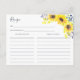 La carte de recette florale d'aquarelle est assortie à nos élégantes invitations à la douche nuptiale Flowerfields rustiques, ornées de tournesols couleur jaune et de minuscules bourgeons fleurs sauvages bleu marine.