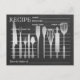 Une carte avec un tableau noir, posée sur une surface blanche avec un fond personnalisé carte de recette rétro sur le devant. Elle est personnalisée avec vos initiales et votre nom.