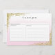 Carte recette avec parties scintillant or look design et ombre rose aquarelle arrière - plan.