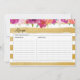 Carte recette avec design floral rose et or rayures arrière - plan aquarelle.