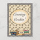 Les cartes de recettes peuvent être utilisées pour personnaliser votre propre style de collection de recettes. Combiné à notre gamme toujours croissante de classeurs de recettes et de pages, mélangez et faites correspondre pour personnaliser et créer votre propre style de livre de cuisine. Ces magnifiques cartes de recettes personnalisées présentent une façade sur le thème de la campagne avec des graphiques des ingrédients de la recette et des accessoires de cuisine, y compris des bols de mélange, un rouleau à broche, du sucre et une tarte fraîchement cuite. Le bord extérieur est orné d'une bordure de chèques noirs et blancs et l'arrière - plan présente de petites cerises éparpillées un peu partout. Le côté arrière comporte des lignes espacées pour vous aider à écrire facilement dans votre recette secrète. Utilisez le modèle de libellé customisé pour personnaliser avec votre propre libellé.