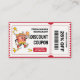 Ce coupon à rabais d'inspiration vintage présente un personnage original de seau de poulet frit de dessin animé et un design classique de billets, qui rappelle les billets de cinéma rétro. Les couleurs audacieuses et la typographie ludique en font un complément amusant et attrayant à toute campagne marketing. Ajoutez une touche de plaisir rétro à vos documents marketing avec ce coupon vintage au poulet frit.
