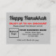 Heureux Hanoukka ! Je vous souhaite la joie, la paix et la bénédiction de cette fête des lumières. Vacances pour célébrer ce Décembre et pour annoncer aussi votre entreprise ou pour promouvoir vos produits ou services. Attirer plus de clients en leur donnant remise, l'une des stratégies marketing pour avoir plus de clients. Carte de réduction personnalisable que vous pouvez utiliser pour attirer plus de clients pour acheter vos produits ou clients à aimer vos services. Carte de réduction avec votre marque d'entreprise comme matériel de marketing que vous pouvez également utiliser pour développer la sensibilisation de marque. Les couleurs design sont des textes noirs et rouges sur arrière - plan gris. Pour customiser cette carte d'escompte, spécifiez le pourcentage de remise que vous proposerez et la date de validité. Téléchargez également votre logo d'entreprise, tapez votre nom d'entreprise, votre adresse et votre numéro de téléphone. Veuillez vérifier l'apparence sur les côtés avant et arrière après avoir téléchargé le logo et tapé des textes. Si l'apparence vous plaît, vous pouvez passer votre commande maintenant. Si vous avez besoin de redimensionner et déplacer le logo et les textes pour s'adapter à cette carte de réduction, s'il vous plaît changer dans l'outil de conception. Vous pouvez également modifier la couleur arrière - plan, la couleur de police et le style de police dans l'outil de conception. Heureux Hanoukka ! Je vous souhaite plus de ventes ce jour férié.