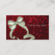 Un carte de visite comportant un bon ou un cadeau pour un salon avec un arrière - plan scintillant, scintillant, rouge, et un grand, argenté arc qui ressemble à une boîte actuelle. Perfectionnez pour des coiffeurs, des stylistes en coiffure, des cosmetologists, la cosmétologie, des salons et plus !