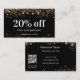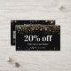 Arrière - plan noir, texte blanc. Décoré avec de la poussière de parties scintillant en faux or foncé. Sur le devant : Ajoutez-vous la remise. Retour : Personnalisez et ajoutez votre nom d'entreprise, numéro de téléphone, courrier, adresse de site, code qr à votre site Web ou compte de médias sociaux.
