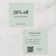 Arrière - plan vert Sage, texte noir Sur le devant : Ajoutez-vous une remise. Retour : Personnalisez et ajoutez votre nom, adresse, numéro de téléphone, courrier, adresse de site, code qr à votre site Web ou compte de médias sociaux.