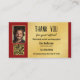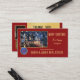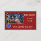 Carte de visite de référence de Noël avec votre propre logo sur un arrière - plan rouge avec l'illustration d'une maison et le contour d'un arbre de Noël avec des flocons de neige festifs. Sur le dos se trouve votre photo personnalisée et un modèle de code QR sur rouge et or. Un grand carte de visite pour un agent immobilier et personnalisable pour d'autres professionnels.