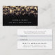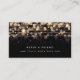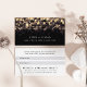 Les cartes de référence chic comprennent votre offre de référence en blanc sur un arrière - plan noir avec une bordure supérieure de lampes à cordes dorées avec un effet bokeh flou. Ajoutez vos conditions de référence et vos coordonnées à l'envers, avec espace pour les noms de vos clients.